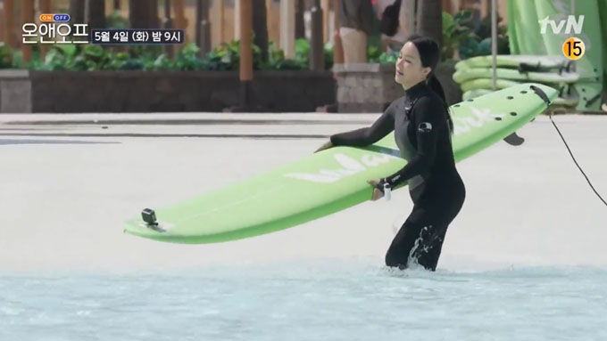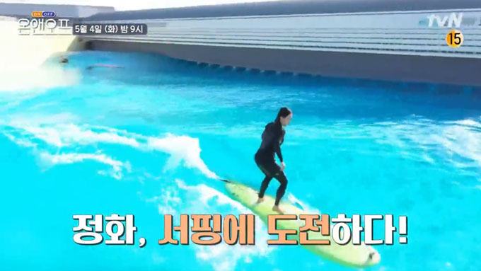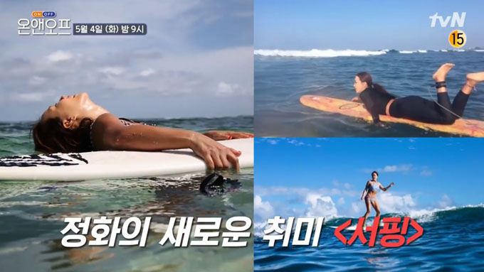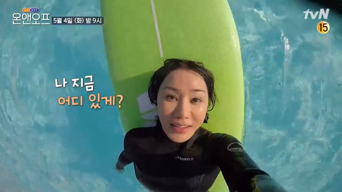 화장한 날 서핑장을 찾은 엄정화는 서핑을 제대로 즐기기 위해 방한 슈트로 환복하고 스트레칭 후 당차게 입수했습니다. 그런가 하면 엄정화는 오랜만에 타는 서핑에 실력이 들통날까 걱정하는 모습을 보여 첫 파도를 타는 데 성공했는지 궁금증을 자아냈습니다.