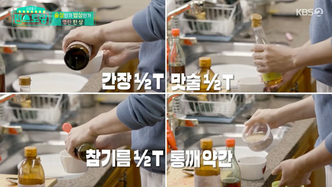 간장 0.5T, 맛술 1t, 참기름 1t, 깨 약간