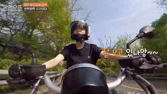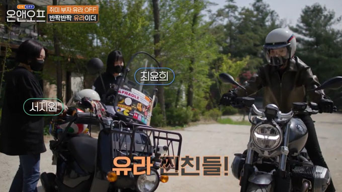 이날 유라는 오토바이(바이크)를 타고 외출하며 절친들을 만나 북악스카이웨이로 향했습니다. 유라는 더운 날씨에 가죽자켓을 입고 더워했지만 곧 라이딩 코스를 돌며 행복을 만끽했습니다.